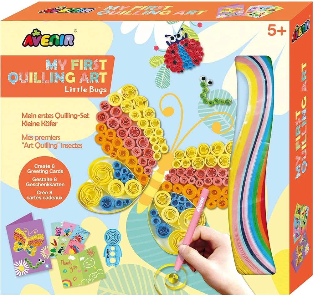 - Contents: 8 different gift cards, 1 roll stencil, 1 quilling pen, 180 quilling papers, 10 craft eyes, 1 instruction manual