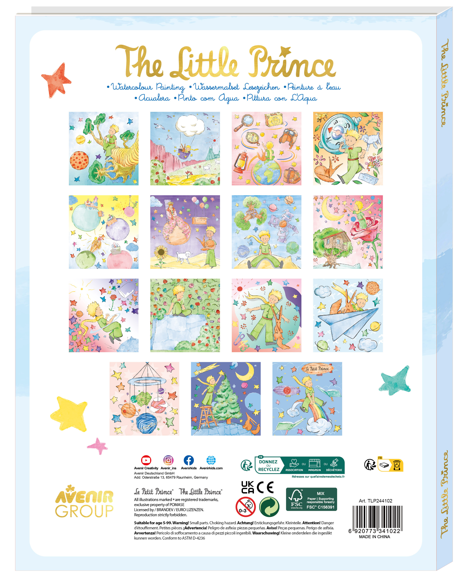 The Little Prince Watercolour Painting is a creative art book for children aged 3 and up, featuring 15 enchanting scenes from The Little Prince ready to be brought to life with water and color. Using the included brush and paint palette, kids can easily fill in each illustration and enjoy a relaxing painting experience. The book style format keeps everything neat and contained, perfect for home or on the go. It encourages artistic expression, color recognition, hand control, and patience all in one calming and imaginative set.